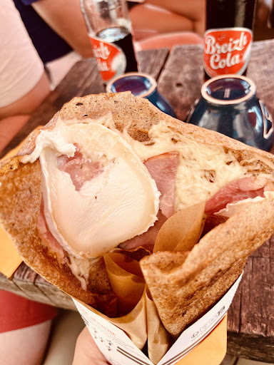 Read moreNous avons vu manger sur place mais 2 tables soi disant réservées indisponibles : au moins 20 min d'attente pour en avoir une autres. On a fini par faire la queue (non indiquée d'ailleurs) pour la vente à emporter. Après 15 min la serveuse donne la table réservée à des gens qui arrivent APRÈS nous. Au bout de 40 min toujours pas de crêpes. Faire des crêpes n'est pourtant pas si long surtout quand il y a 6 tables à servir et pas de couverts ni d'assiettes donc pas de vaisselle. Après réclamation la serveuse se permet de dire en cuisine "ça gueule" et le collègue de répondre "s'ils sont pas contents tu les rembourse et ils rentrent chez eux!". Quand on prend les clients de haut, faites en sorte qu'ils ne vous entendent pas, c'est mieux. Quand vous êtes incapables de gérer la quantité de commandes, arrêtez d'en prendre. Résultat : 45 minutes d'attente pour des crêpes à emporter plus que moyennes avec oeuf trop cuit. Je ne...