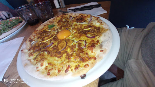 Read moreTrès très déçue de cette expérience, trop cher pour ce que nous avons mangé..... il est rare que cela m'arrive... Ce restaurant m'avait fait de l'oeil lors de ma précédente visite, nous y sommes donc allée il y a une semaine, lors de notre escapade dans le coin.... Avec mes enfants, nous en sommes ressorties déçues, arrivée avec limite une réflexion à savoir s'ils servaient encore, finalement c'est ok, mais on nous fait entrer et passer près d'une table servant de bureau, pourquoi pas, mais il serait plus agréable visuellement que cet espace soit au minimum propre, nettoyé et rangé... Nous avons dû demander à changer un verre dans lequel il y avait une bestiole, j'ai un gros doute sur le fait que juste la bête ait été retirée sans refaire la boisson, nous avons aussi dû demander à changer des couverts qui était plus que sale.... Une des pizzas était brûlée en dessous, pas terrible à couper, ni à manger d'ailleurs, œuf beaucoup trop cuit sur l'autre.... Et pendant le repas, entendre les serveurs parler perso, dire qu'ils sont heureux d'être en week-end ensuite, etc, pas agréable non plus.... même si parler entre eux n'est pas interdit, il serait plus agréable de ne pas le faire aussi ouvertement devant...