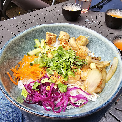 Excellente adresse pour (re)découvrir les saveurs de l’art culinaire vietnamien. J’en suis à mon deuxième repas entre amis et j’y retournerais dès que possible tant pour le cadre agréable , l’accueil chaleureux de ce jeune couple , mais aussi et surtout pour ses savoureuses spécialités que nous avons tous appréciés : nems chèvre miel (savoureux et légers), ses samousas (enveloppe craquante, farce succulente sans être gras), ses beignets de crevettes inégalées (pâte légère et non bourrée d’huile, grosse crevette idéalement cuite), son bœuf sauté au basilic thaï et piments (relevé sans excès et idéalement cuit sans être trop sec comme cela est généralement le cas), calamars grillés au sel et poivre (rien à en dire ce n’est que c’est une « tuerie »), son magret de canard mariné au miel et soja, (qualité et cuisson de la viande parfaite : peau craquante, chair rosée et tendre), son canard laqué maison, son poulet au curry rouge (légèrement citronné) ses irrésistibles nouilles aux bœufs, et en désert je recommande particulièrement entre autres délices : les bananes nappées au caramel… une autre tuerie.