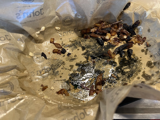 Ensuite nous attendons dehors notre 13h09 qui s'est affiché à la fin de la commande et nous sonnons - à l"interphone ( appareil pour parler, pas juste une sonnette, on est bien d'accord ? ) Nous sonnons plusieurs fois mais rien ne se passe. Nous voyons une personne server au drive. Il nous aperçoit et demande ce que nous faisons. Je lui donne notre code pour la commande et il dit ' oui ils savent et c'est en cours. Cinq minutes passent. Je revois la personne du drive et il va voir ses collègues pour nous. Cinq minutes passent. J'entre dans le restaurant et m'approche du comptoir/ cuisine. On dit qu'ils m'ont entendu sonner et que les frites arrivent et le chef nous apportera la commande dehors. Je signale le problème de l'interphone et on me dit oui on vous a entendu sonner. Pour ne pas perdre encore du temps je decide de ne pas expliquer le but d'un interphone. Je retourne a la voiture suivie par le chef en mode tout va bien pourquoi se presser - pas d'excuses pour le retard de 15mins ..... Arrivés chez ma fille j'avais presque envie de peser les frites - cornets remplis de moitié - puis le fond de la friteuse - même pas un melange de neuf et de vieux. Burgers moyens - burger Walker tout mou - le croustillant était perdu - on a fait le burger longtemps avant je soupçonne. Bref...