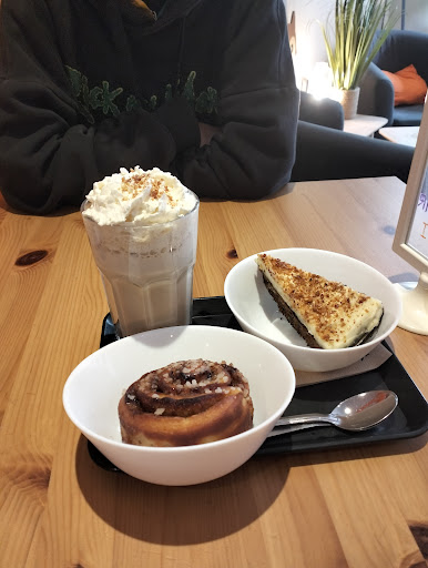 Read moreVraiment une très bonne expérience ! Le cadre est chaleureux, les garçons sont très agréables, la pièce est rempli de plantes et de livres ce qui la rend familière, l'endroit est très lumineux. Le café est vraiment délicieux pour un prix abordable, je n'ai pas eu l'occasion de goûter les pâtisseries mais celles-ci avaient l'air tout aussi bonnes. Le choix est diversifié et les produits sont faits maison. La cuillère et les tasses ne sont pas en plastiques ce qui fait plaisir pour l'environnement et de plus j'ai cru voir que pour les boissons à emporter il était possible d'avoir une réduction si on apportait sa propre tasse. Je recommande vivement cet endroit qui plaît aussi bien aux petits qu'aux grands (avec une bibliothèque participative dans laquelle il y a également des bandes dessinées pour les...
