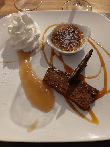 Une belle surprise pour ce restaurant que nous avons testé le 18/02/23. Une carte avec des produits frais, de la cuisine traditionnelle et maison bien mis en valeur dans les assiettes et sublimée dans la préparation. Un régal visuel et des papilles. Le rapport qualité prix est correct, par exemple nous avons pris le menu entré plat dessert du jour pour 25€ (ou 20€ pour entrée et plat ou plat et dessert) avec trois choix pour l'entrée (vol au vent gésiers, lardons, champignons, crème / tartare de crevettes avec échalotes, trois poivrons et aneth fraîche (c'était sublime)/feuilleté d'andouille), trois choix pour le plat (onglet de boeuf sauce au choix dont curé nantais, échalote.../ poisson blanc (merlu je crois)/ et je ne sais plus + accompagnement au choix riz et ratatouille, gratin dauphinois (Il était extra), frites....), assiette de fromages (3) ou dessert gourmand avec une petite crème brûlée, une petite mousse au chocolat, une petite compotée de pommes et chantilly) Nous y retournons, nous nous sommes régalés, c'était un délice. Autant vous dire que je recommande ce restaurant. La prochaine fois je...