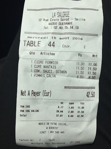 Read moreJoli restaurant avec une terrasse très agréable donnant sur un jardin très calme Je n étais pas motivé car je n aime pas trop les crêpes au Sarrazin. Quelle fut ma surprise à la première bouchée Une merveille, craquante sur les bords, moelleuse sur le reste de la crêpe. Une garniture à tomber par terre. Nous avons pris au chèvre, à la saucisse avec oignon confit et une au saumon. Mais quel bonheur pour les papilles. Nous avons pris du cidre également très bon et quand on est arrivé au dessert j ai pris la glace salorge et la deuxième effet kiss cool spéculos caramel fondant amendes grillées je n ai pas de mots je dirai juste extra Quand au serveuses et serveurs, patients souriants blagueurs Vous l aurez compris je suis sous le charme et je vous recommande d y aller à 500% Si je dois remanger une crêpe au Sarrazin se sera à la Salorge Et le plus beau dans tout ça c est que le prix est hyper raisonnable, comptez 30€ par personnes avec apéritif cidre...