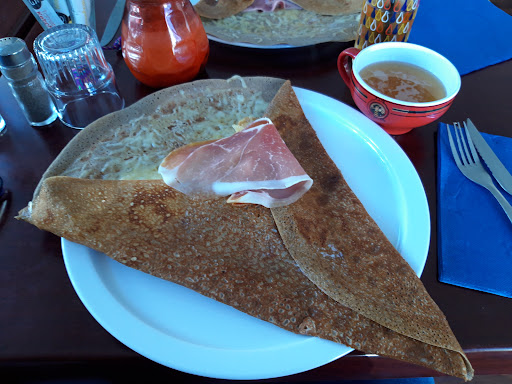 Idéalement placé entre le port et la rue piétonne de La Turballe, nous avons particulièrement apprécié les galettes plutôt copieuses, aussi bien les Bigoudènes des enfants que les Breizh Original pour nous. A noter que la Breizh Original est une excellente alternative au traditionnel burger ! En revanche le service est très long, les frites sont du vulgaire surgelé et les crêpes - donc sucrées - sont loin d'être exceptionnelles. La mienne était pale et mal cuite, surchargée en crème de marron avec une noisette de crème qui ressemblait plus à du fromage blanc, d'ailleurs excessivement salé, qu'à autre chose...dommage !!! Quant aux glaces des enfants elles étaient généreusement chargées mais là encore rien d'exceptionnel puisqu'il s'agit hélas de glace industrielle, vraisemblablement du bon vieux Carte d'Or. Comme dit madame, même s'il n'y a pas obligation de fabriquer sa glace soit même pourquoi ne pas se fournir chez des petits artisans ou proposer des marques un peu plus premium ? Quant au cidre quel dommage de proposer du Kérisac quand on sait qu'il y a plein de petits producteurs qui valent le détour en Bretagne ? En plus, concernant notre pichet il manquait cruellement d'effervescence et était plutôt amer... bref, c'est loin, très loin même, d'être le meilleur que...