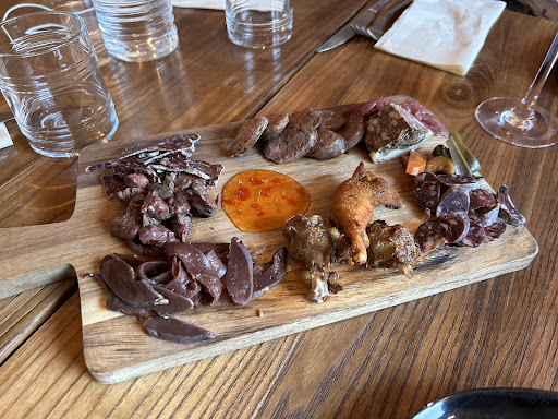 Read moreDas Restaurant „La Voliére“ ist ein echter Geheimtipp. Aufgrund seiner versteckten Lage im Hinterland wird es primär von Einheimischen besucht. Es gehört zu „Les Pigeons de Mesquer“, hier werden Tauben gezüchtet, verarbeitet und angeboten - zum Mitnehmen oder für den Genuss im Restaurant. Das Menü ist eine kulinarische Entdeckungsreise, die Küche ist fantastisch. Das Foto zeigt das Tagesgericht am Tag unseres Besuches, Taube und Tintenfisch auf dem Teller vereint, superlecker. Auch die Weinauswahl stimmt, man kann selbst in die Weinstube gehen und sich einen Überblick verschaffen. Auch der Service und das Ambiente sind wirklich gut. Sowohl von der Terrasse als auch vom Innenraum hat man einen Blick auf die Volieren, frischer und leckerer geht es nicht. Wir kommen auf jeden Fall wieder, wenn wir erneut an der Atlantikküste auf der Halbinsel von Guérande mit ihren zahlreichen...