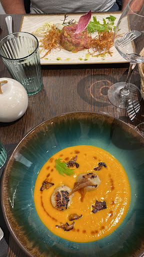 Read moreSincèrement, nous nous attendions à mieux au regard des avis et parution sur le Michelin ("sélection Michelin")... Sans grande surprise gustative, ni esthétique. Mais bon les gouts et les couleurs, et on ne juge pas sur une première expérience... En revanche, lors du paiement de l'addition, la gérante accepta à contrecœur 2 cartes "restaurant" pour la même note!!! Nous ne comprenons pas ce genre de comportement même si une taxe est appliquée pour les commerçants. Sans ces cartes, Madame, nous ne serions pas venus dans votre établissement, surtout pour le prix du menu. De plus, il y avait des tables vides. Donc sans ces cartes, vous vous seriez privée de deux couverts de plus (bénéfice acquis même avec la taxe prélevée comprise) Après, ce n'est peut-être pas cette population que vous recherchez, mais là, je doute que vous fassiez...
