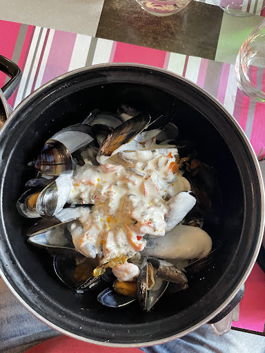 Lorsque les deux plats de moules sont dĂ©posĂ©s, nous sommes surpris car les marmites sont Ă moitiĂ© vides, je nâai jamais vu ça. Passons sur les moules pas cuites (fermĂ©es et blanches), les 2 sauces roquefort sont quasi inexistantes et se rĂ©sument Ă un fond dâeau blanc avec 3 tranches dâoignon.