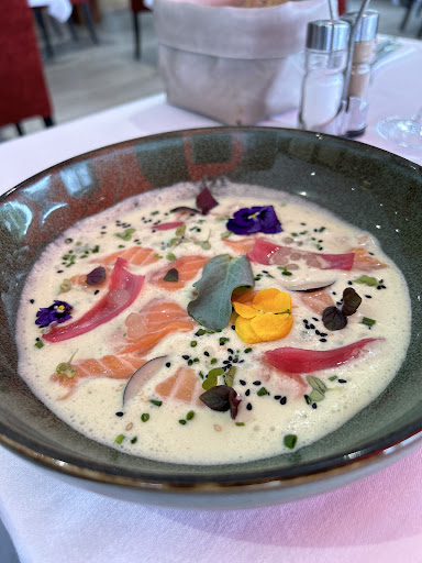 A part ça c'est l'apocalyspse de la restauration, sur 5 plats commandés, 2 sont arrivés avec 5 minutes de retard par rapport aux autres, et un plat à carrément été oublié. Au bout de 10 minutes la serveuse vient pour voir si tout va bien et je lui explique que j'attends toujours mon burger veggie... ( Stupeur et étonnement ) 10 minutes plus tard je suis servi ( en urgence ) alors que le resto est vide ..( Je n'ose imaginer en cas d'affluence ) Pour me retrouver en tête à tête avec un burger veggie que j'aurais très bien pu me faire chez moi en 3minutes. ( le buns rechauffé au grille pain a moitié brûlé, des champignons pas cuits encore pleins d'eau et les légumes à peine travaillés, bref une honte) Pour ne pas dire que j'avais déjà perdu l'appétit en comprennant que l'on a oublié ma commande et en attendant mon plat. Pour suivre avec la non chalance des gérants, la fin de non recevoir les critiques, aucune excuse, ni remise en question, ni geste commercial. Je passe vite sur les plats de mes convives ( 3 plats avec du poisson, 1 qui ressemble à de la bouillie, 2 plats qui ont la même sauce pour des poissons différents, dont 1 poisson avarié avec une forte odeur de marée basse. ) résultat : Aucune assiette de terminée. Que des déconvenues, quelle déception. Ce n'est pas un restaurant mais un calvaire. Du service, à l'accueil du gérant en short et chemise de plage pour un lieu qui se veut chic ... De la cuisine, basique, réchauffée, des produits qui doivent passer leur vie au congélo, et une addition salée pour le service rendu, les estomacs vides, voir noués. C'est une blague ? Une caméra cachée ? Non c'est juste un très bon candidat pour pour l'emission " Cauchemar en cuisine " Si vous tenez à votre vie et à votre...