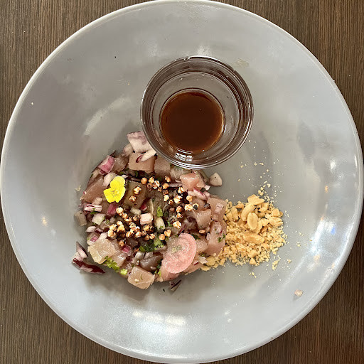 For our visit there were two staff serving and the chef directing and cooking locally sourced produce out front over an open flame. Despite arriving relatively early some options were already sold out. In the end my wife and son had the Tuna Tartare and I had the clams to start, Most of my dish was empty shells, however I raised it with the waiter, who brought the chef over, and, after an apology, I had a second plate full of clams delivered very quickly. Both dishes were excellent. I was lacking some bread for the clam liquor, but had I asked (as I found out) it would have been provided.
