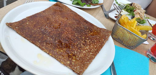 Read moreNous sommes venus hier en fin d'après midi 18h45 boire un coup et manger une crêpe. Nous commandons un café et un chocolat chaud et un mojito, un serveur arrive derrière le nôtre en disant qu'à cette heure-ci ils ne servent plus de boissons chaudes (aucune indication sur la carte rien, aucune justification...). Soit nous commandons donc une bière et un Perrier en remplacement. Nous payons a l'arrivée des boissons. Avec cela 3 crêpes. Deux crêpes sont servis, nous attendons un peu la troisième puis rien, nous posons donc la question, le serveur nous dit qu'il va se renseigner. Il revient une fois tout fini à notre table ( donc plutôt assez longtemps) pour débarrasser et nous dit qu'il avait oublié de la sélectionner. Honnêtement pour une crêpe au sucre à 3€( celle manquante), ils auraient pu l'offrir pour une addition de 32€ au total. Néanmoins led autres crêpes étaient bonnes, ils ne sont juste pas du tout commerçant et c'est clairement...