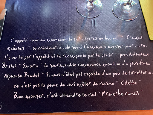 Wow! An amazing culinary delight! Multiple choices for the entrée, plat, and dessert, which one doesn't always find in small restaurants. Food was amazing, service impeccable, and nice choices of wines. Our waiter recommended some perfect pairings. Wish I could give 6 stars. Booking is an absolute must. A wonderful dinner! Kudos to the small, yet very talented team delivering a truly fantastic evening of high quality offerings. Oh, and the reason why the price might seem a bit high is because we opted for an apéro, then a delicious Gascogne moelleux to go with the foie gras, a Muscat, and two different red wines with the main. Glasses were...