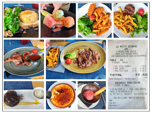 Food: We ate on Saturday lunchtime. The menu focussed on a small number of classic french dishes with other northern european influences (e.g. Gravlax). We took took two âMenu Petit Goinfreâ and 2 âMenu Enfantâ. For the âMenu Petit Goinfreâ we took Gravlax followed by Bavette Alloyau, and St Marcelin followed by Cotelets dâAgneau. For the âMenu enfantsâ, we chose one chicken nuggets and one Steak HachĂ©. Everything was well prepared and well cooked. The chicken nuggets and steak hachĂ© were prepared on site with good quality meat so we were happy to take the steak hachĂ© rare. Both were served with good chips and salad. The Gravlax was served with Gaspacho ice cream and a mousse (I forget the detail) with watermelon and lemon. It worked really well together and I loved it. The bavette was served with caramelised onion and chips. The meat was cooked rare and was good, but not as tender as some Iâve had. The St Marcelin was great and the lamb, served with gravy was also tasty. I wouldnât hesitate to recommend le Petit Goinfre. Food was great and the prices...
