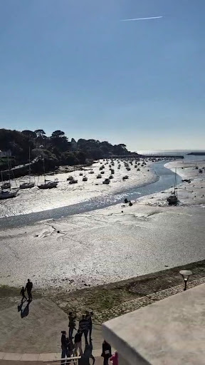 Brunch rĂ©servĂ© pour un samedi . Je vais commencer par les points positifs. Le restaurant est idĂ©alement situĂ© avec une vue magnifique depuis l'Ă©tage sur la baie. On peut y contempler la mer Ă marĂ©e haute ou basse avec les bateaux ainsi qu'un beau manoir et l'horizon magnifique. La terrasse balcon est trĂšs agrĂ©able en temps de soleil. On y trouve des transats et parasols pour se relaxer ainsi que des tables pour y manger. Pour accĂ©der aux Ă©tages il y a un ascenseur, donc aucun problĂšme pour s'y rendre avec une poussette ou pour les personnes Ă mobilitĂ© rĂ©duite. Point ++ les chiens sont acceptĂ©s ! L'ambiance du restaurant est trĂšs cosy avec une dĂ©coration douce et agrĂ©able, un petit cĂŽtĂ© chic sans trop en faire. Pas de musique d'ambiance mais un piano Ă disposition pour les musiciens ou amateurs inspirĂ©s đ Plats et boissons sans alcool Ă volontĂ©, ainsi qu'une demi coupe de pĂ©tillant est proposĂ©e. Le personnel est trĂšs agrĂ©able et au service des clients . Deux WC sont Ă disposition.