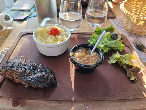 Visite en couple une soirée de juillet 2023... Patronne désagréable, qui nous snobe et prend ses grands airs? 🤯 lunaire comme comportement !! Apparemment affairée auprès d'une table de clients qui s'apparentent à être des connaissances de madame... pourquoi pas 🙂 mais de là à hurler de rire et tailler la bavette, en sirotant son kir avec eux pendant des dizaines de minutes, devant le reste de la clientèle (Peu nombreuse ce soir là certes), et en oublier les bases du métier, il y a des limites à ne pas franchir professionnellement. Nous sommes placés à l'écart sur une petite table en plein courant d'air. Carte chère, plats/vins en dehors du rapport qualité/prix/prestations attendu. Nourriture moyenne, pas au niveau attendu. L'ambiance était gênante et décevante, nous nous sommes éclipsés dès que possible. Elle nous a pris pour des touristes de passage, mais nous sommes bien des locaux, et nous ne repasserons pas dans sa "lugubre...