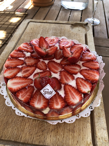 Le "joli décor" a été réduit au maximum. 2 fraises coupées en 4, comme d habitude sur un fraisier, et une plaque en pâte d'amande DURE, qui n'a pas été mangée. Quelle déception, j'en attendais un peu plus de la Maison GAVET! La consigne devait être "surtout ne pas trop en faire" ; ça a été respecté je l'affirme. Certes le fraisier était bon mais le "waouh" escompté a fait "pchittttt" Le sourire est en option le matin, il y a peut-être du mieux...