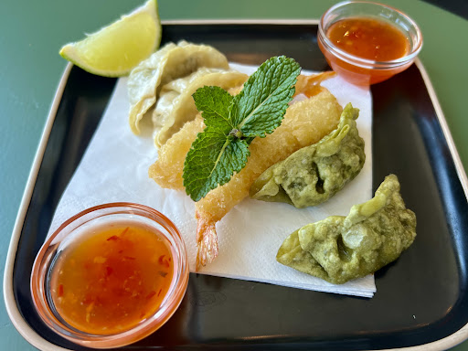 Read moreJe savais depuis un moment maintenant que le Chef David allait ouvrir un petit restau ThaĂŻ food fusio, et je m'y suis rendu qu'aujourd'hui, en dĂ©couvrant sa carte je constate qu'il y propose des Ramens, donc je voulais en commander un mais apparemment il fait trop chaud pour des ramens (moi je dis y'a pas de saisons pour de bon ramens ^^) Ă la place j'ai choisis des petites crevettes tempura pour l'entrĂ©e et un plat du jour un duo de poisson composer de thon et de saumon avec des petites lĂ©gumes vapeurs. Et bah vous savez quoi?? Je me suis regaler!!! Les crevettes avait une cuisson absolument parfaite, ni trop cuite ni pas assez, juste tiĂšde Ă cĆur et les petites sauces pour accompagner Ă©tait incroyable, et pour le duo, rien Ă redire les deux piĂšces de poissons Ă©tait juste cuite, et d'une tendresse.. les lĂ©gumes vapeurs rien Ă redire non plus. Bref trooooop bon de A Ă Z. Je recommande vivement!! En revanche Chef David, il faut remettre les ramens!! Je veux goĂ»ter...