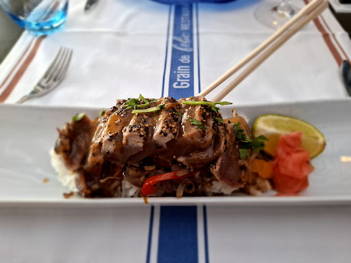 Read moreHummm, comment décrire ce lieu unique... Le Grain de Folie : Une Fusion Asie-France à Pornichet Situé à Pornichet avec une vue imprenable sur la mer, "Le Grain de Folie" n'est pas un restaurant ordinaire. C'est un lieu où la cheffe Catherine Gouon orchestre un mariage audacieux entre la gastronomie française et les saveurs asiatiques, offrant une symphonie gustative unique. Avec une audace créative, la cheffe nous propose une cuisine innovante où l'équilibre entre le sucré et le salé, le doux et l'épicé, est parfaitement maîtrisé. La carte met en avant des produits frais et de saison, témoignant de sa profonde connaissance des ingrédients et de son talent à les sublimer. Des plats comme le tataki de thon ou le tartare préparé façon thaï se côtoient, créant des mariages de saveurs surprenants et harmonieux. Pour les desserts, je vous invite simplement à vous délecter de la carte, car je n'ai pas les mots pour vous transporter dans mon voyage de saveurs. Une Expérience Complète et Mémorable Au-delà de l'excellence culinaire, "Le Grain de Folie" offre une expérience sensorielle complète. Le cadre, avec sa vue imprenable sur la baie, ajoute une touche poétique au repas. L'accueil, le service, les conseils, les subtiles recommandations et les taquineries vous font passer un moment inoubliable dans une atmosphère chaleureuse et conviviale. C'est un lieu où l'on revient avec plaisir, séduit par la cuisine maison de Catherine Gouon et l'ambiance unique du restaurant. Les tarifs sont à la hauteur de nos attentes. Nous...