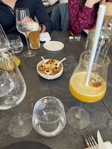 Read moreTrès bon restaurant, les saveurs sont présentes, la cuisine raffinée et les accords mets vins est bonne. Le service est professionnel et les tables sont bien espacées ce qui respecte l'intimité de chacun. Cependant, j'ai trouvé cela assez cher, oui la qualité est là mais la quantité un peu moins. Nous avions pris 6 services à 63 euros le soir et les assiettes étaient minuscules. Certes, 6 services fait que nous n'aurions pas eu des grandes assiettes mais le filet mignon de porc devait faire 3cm x 2 cm. En 2 bouchées, c'était plié. Nous sommes ressortis en ayant faim et nous ne sommes pas de gros mangeurs habituellement. Pour être habitué aux grands restaurants, je trouve que le rapport quantité/prix n'est pas fou. 2 petits verres de vins pour 16 euros est un peu excessif lorsque la bouteille entière de vin rouge en coûte 8. Il existe d'autres restaurants à Saint-Nazaire ou sur la côté tout aussi bons et qualitatifs à moins cher. Le délai d'attente pour réserver est aussi très long. Il faut attendre plusieurs mois avant d'avoir une table. Nous avons été chanceux et avons eu une table en dernière minute grâce à une annulation. Si vous voulez y manger, prévoyez le coup plusieurs mois en avance. Dans l'ensemble, très bon restaurant mais prix un...