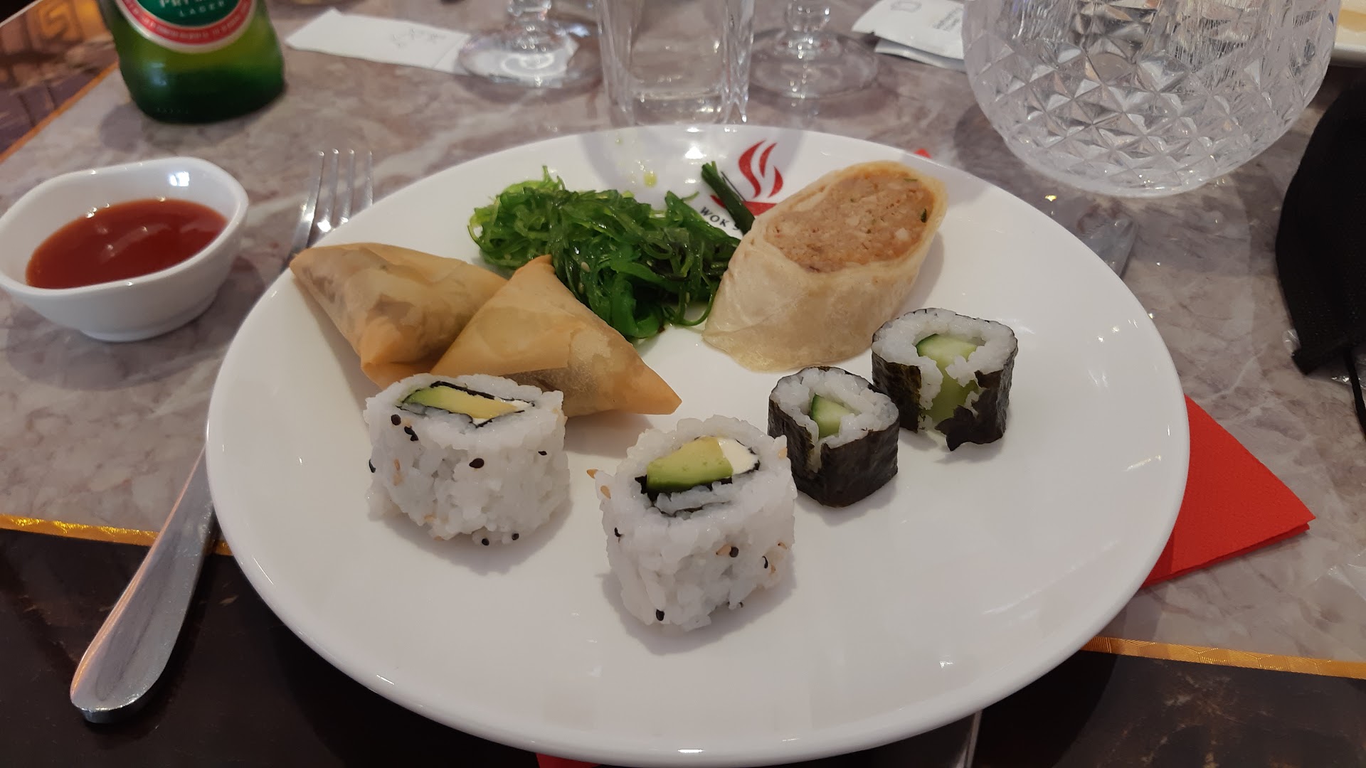 CĂŽtĂ© cuisine, le choix en sushis et accompagnements est trĂšs limitĂ©. Les sushis sont minuscules pour certains (Ă peine 1,5 cm) et le poisson est beaucoup trop cuit, vraiment sec. Lorsque jâai demandĂ© sâil restait dâautres variĂ©tĂ©s, le cuisinier mâa simplement rĂ©pondu : âWallah, câest tous les mĂȘmes, câest du riz et du saumon.â Un vrai manque de professionnalisme pour un restaurant de ce type.