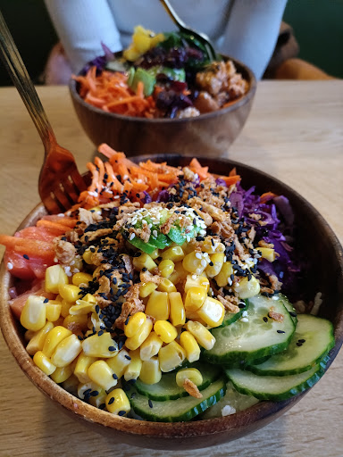 Côté verres, nous avons aimé nos cocktails préparés accompagnés d'une planche qui passe bien en début de soirée. Côté repas, nous avons pris les poke bowls qui étaient sympa et bons.