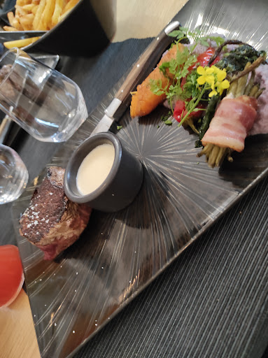 J’ai commandé un “rôti Orloff”, mais ce qui m’a été servi ne correspondait pas du tout à ce que j’attendais. Il s’agissait d’une simple tranche de rôti de porc à peine tiède, avec une tranche de fromage fondu (type croque-monsieur) et une rondelle de tomate posée dessus. Rien à voir avec un vrai rôti Orloff : présentation simpliste et plat sans saveur.