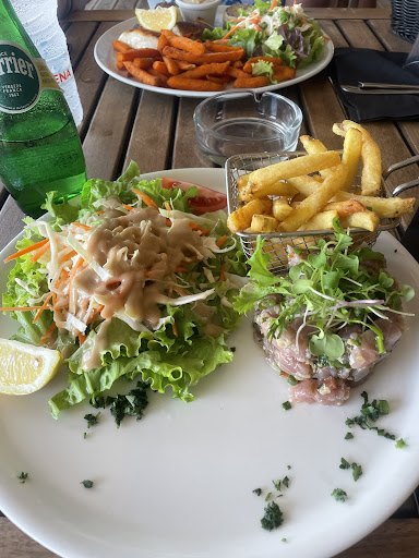 Read moreCe restaurant profite du magnifique cadre qui l'entoure pour se permettre un service totalement dérisoire. Pour commencer la réservation faite directement sur place. Accueil très froid d'une serveuse, j'avais vraiment l'impression de déranger que ce n'était pas le moment. Ensuite lors de l'installation, on nous a présenté un tableau y affichant la carte des menus non disponibles. Au lieu de faire les suggestions du jour, non tout le contraire. Nous étions au début du service et il n'y avait déjà pas grand chose à commander. Bref, nous commandons les apéritifs et on nous presse pour commander de suite les menus. Nous nous sommes exécutés et avons donc passé les commandes. 3/4 d'heure plus tard, pas d'apéritifs mais nos menus qui arrivent dont 1 manquant. Je précise à la serveuse que nous attendons toujours les verres commandés et on nous répond avec des excuses en nous disant ça arrive de suite. Du coup, nous attendons et 30 minutes plus tard, le dernier plat qui arrive et sans les verres. Nos plats étant déjà froids, nous décidons de nous passer des apéritifs et demandons malgré tout une carafe d'eau et des condiments. Au final, vous l'avez déjà compris, pas d'eau et rien de ce qui a été demandé... De plus la qualité des plats était des plus médiocre !!! Mieux vaut une bonne baraque à frites et manger sur la plage ( bon pas trop en ce moment avec les mesures covid)... Et le pire dans tout ça, c'est qu'au moment de passer à la caisse, on nous facture les choses que nous n'avons jamais eu. La personne à la caisse a été compréhensive et nous les a déduit au final. Je déconseille fortement, passez...