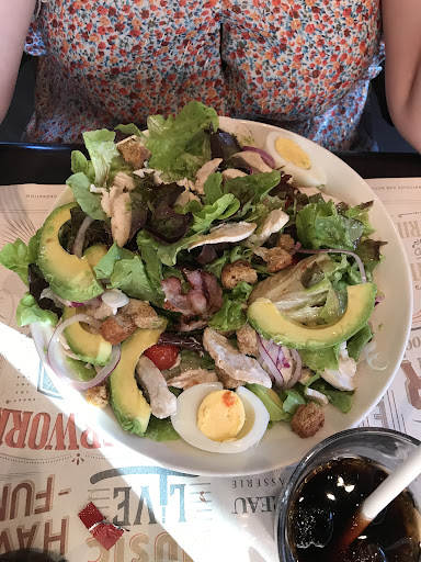 Read moreRepas en famille, arrivée à 19h un samedi soir sans réservation nous avons été accueillis à l’intérieur sans soucis. Les menus ont été mis rapidement à disposition et les boissons servi rapidement. Une fois les plats choisis, ceux-ci sont arrivés rapidement, en même temps et chaud pour ce qui devait l’être. Les commande et les cuissons ont été respectées. La salade est très généreuse, les ingrédients sont frais et goûteux. Le burger est très bien, la viande de qualité, aucun ingrédient n’écrase l’ose gustative ment. Les frites sont très bonne : on en redemande ! Pendant la dégustation de nos plats le monde a commencé à arriver, ce qui a submergé notre serveuse qui s’est totalement désorganisée dans la gestion des tables, supprimant toute notion d’ordre d’arrivée et oubliant nos demandes les plus basiques (pain, carafe d’eau…). Après avoir été débarrassés, le dessert des enfants a été apporté (commandé en même temps que les plats) mais nous n’avons pas eu la carte pour les adultes. Les enfants ont eu le temps de manger leur dessert avant que nous revoyons la serveuse que nous avons interpellé deux fois. Nous avons donc abandonné, demandé l’addition qui s’est également fait attendre (15 min). Nous nous sommes donc rendu au bar pour régler notre repas et nous sommes partis.