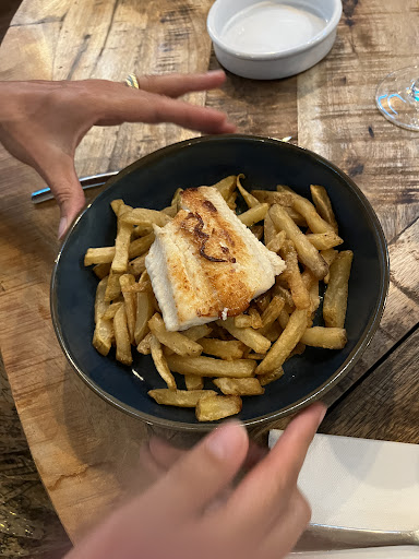 Poisson malodorant, en dose rachitique, dĂ©licatement jetĂ© sur son lit de frites. Quand un poisson de riviĂšre rappelle lâodeur de la Seine, quel joli pied de nez du destin.