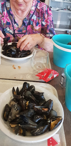 Ce qui est bien, c'est qu'on peut aller se resservir... Alors, on embarque son assiette, son petit seau de moules vides, jusqu'au buffet ou l'on nous ressert sympathiquement.