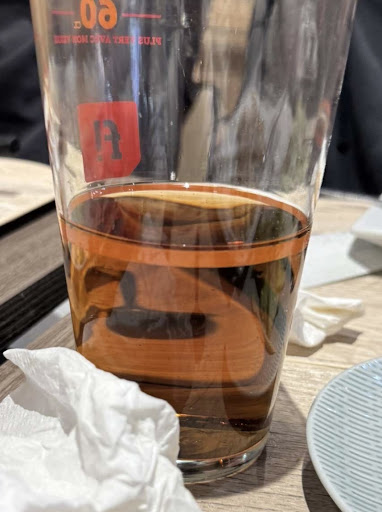 De retour a notre table : table vide et parfaitement nettoyée. Ou est notre bouteille de cidre a peine entamée? Ou sont nos assiettes de frites? Ou sont nos glaçons? Ou est mon ticket de caisse? Ou sont nos plateaux?