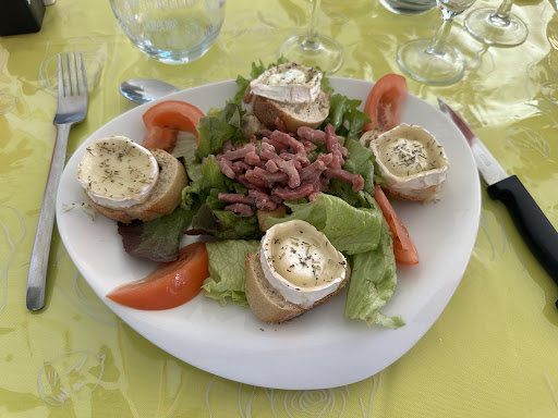 Read moreVisite au 14 juillet 2020. Un accueil fort agréable avec un service de qualité et une gentillesse remarquable. En entrée, une salade chèvre chaud incroyable, du goût, de la mâche ; soit une salade composée de qualité. En plat, une bavette d'Aloyau avec des frites et une sauce au poivre, soit dit en passant fantastique. Une bavette saignante à souhait, une sauce incroyable avec un vrai goût de poivre et des frites épaisses, croustillantes et succulentes. Le plat de fromage servit avec une petite confiture délicieuse et des fromages très bons. Les desserts sont au choix, des desserts fait maison comme la tarte poire chocolat ou le crumble qui sont délicieux. Bref, un restaurant de qualité, non seulement pour les plats mais aussi pour le personnel qui est...