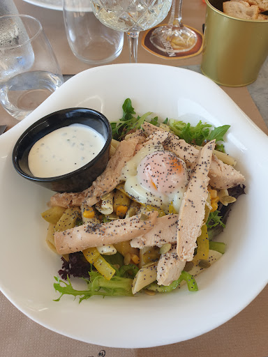 J ai entendu beaucoup de bien sûr ce resto, malheureusement très déçu...un accueil limite sympa mais la personne s'est détendue pendant le service. Pour les plats, mon mari a pris des chipirons qui étaient bons et bien cuits, par contre servi avec 2 cuillerées de riz et quelques morceaux de légumes en guise de piperade. Perso j'ai pris la salade du jour qui étaient des pennes, poulet terriyaki et légumes grillés....je me suis retrouvée avec un lit de salade verte recouverte de quelques pâtes, des morceaux de poulet qui n'avaient rien de terriyaki( sans assaisonnement et peut être même sortis d'un sachet) et quelques lamelles de poivrons à l'eau! Comme nous avions encore faim car l'ensemble pas très copieux nous avons pris du pain perdu en dessert, bien épais, mais pas imbibé et sec! Malheureusement nous n'y retournerons pas, c'est dommage car la terrasse est bien agréable au bord de la rivière et nous...