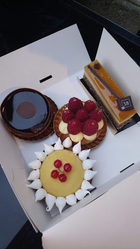 Read moreJ'ai acheté quelques pâtisseries (et viennoiseries) aujourd'hui dans cet établissement et j'ai été impressionné. Pour moi, c'est une pâtisserie innovante, qui sort de l'ordinaire à la fois pour le look, les couleurs et les goûts des pâtisseries en vente. Tous les clients autour de moi semblaient être des habitués, tous semblaient très heureux d'avoir la chance d'avoir une pâtisserie/ boulangerie telle que celle ci près de chez eux. J'avoue avoir été surpris par la note moyenne de Google bien en dessous de la qualité réelle de ce magasin. Le personne qui m'a servi a été très aimable, charmante et conviviale. Vraiment pour moi c'est une pâtisserie exceptionnelle. Saintes, en plus d'être une ville très agréable grâce à son architecture magnifique et son centre ville très vivant, a la chance d'avoir "au 38" des artisans pâtissiers fantastiques. Que...