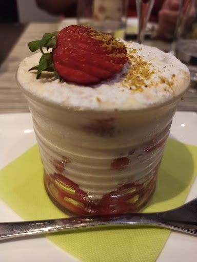 Quand au tiramisu Ă la fraise : portion Ă©norme, fraĂźcheur des fruits, sucrĂ© sans excĂšs, formidable. Nous reviendrons. đ