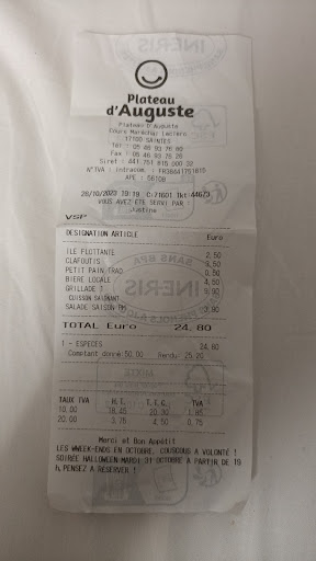 Nous apprécions généralement le Plateau d’Auguste, mais ces expériences sont inacceptables. Nous pensons qu’il est essentiel de former le personnel à accueillir les clients avec respect, à gérer correctement les réductions, et à éviter ce type de comportement condescendant, particulièrement envers de jeunes clients qui font l’effort de venir...