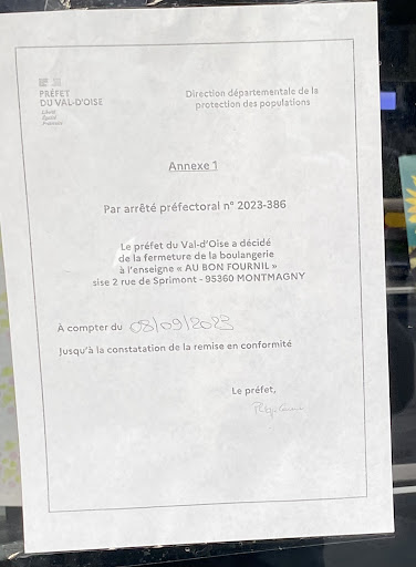 Read more🔴 #santé | Fermeture administrative décidée par le Préfet du Val-d'Oise de la boulangerie-pâtisserie « au bon Fournil » situé 2 rue de Sprimont à Montmagny :