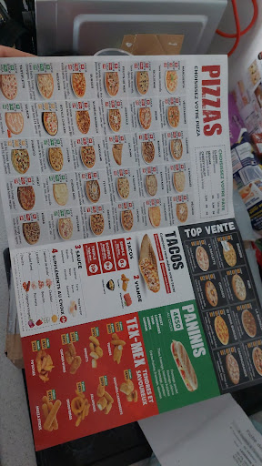 Read moreLe personnel est sympathique et commerçant. Les tarifs sont vraiment raisonnable et pour un euros de plus, on bĂ©nĂ©ficie de la taille supĂ©rieure de la pizza. Ce qui la rend vraiment trĂšs intĂ©ressant. Pour les jeunes, le midi, il y a un menu Ă©tudiant avec une pizza et une boisson. Il y a une bonne quinzaine de place assises pour manger Ă lâintĂ©rieur. les pizzas sont vraiment bonnes et bien garnies, ce qui est loins dâĂȘtre toujours le cas de ce type...