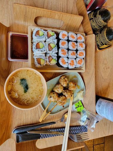 Was surprised I could use a hotel voucher to eat here, made me very happy instead of eating bar food. Chicken meatballs were good even though it wasn't grilled as it traditionally would be in true yakitori style. They use Scottish salmon since it is plentiful here: medium fattiness but fresh and good! Avocado was clean and fresh, I also ordered a side order of miso soup, which hit the spot with this meal. They offer regular shoyu (soy sauce) but also a sweet soy sauce which was okay, but not my style with sushi. Service was fast and excellent, exactly as I ordered. For some reason the Bordeaux I drank was super. Still young as vintage 2021, but pretty darn good! I really enjoyed the music being played, probably stayed an hour longer than I should have. LOL Will definitely be back here if I am ever...