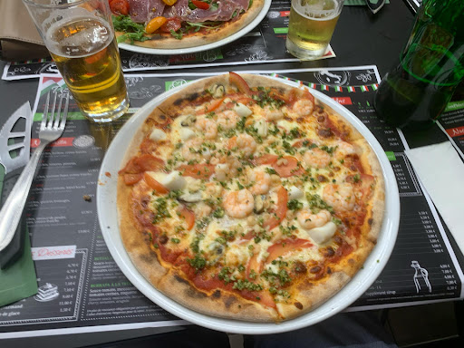There are alot of restaurants in roissy but this pitoresque pizzeria is a place you should defenitely go to if you’re a fan of pizzas. At first sight you would not expect this place to be as appealing as I would let it seem to be. As you approach this little pizza restaurant, which is mainly a take away pizzeria, you can already smell the woodfueled Pizza oven. Defenitely a pre for good authentic pizzas. The place has 8 2-person tables in a 4 by 4 m room. Half of the menu is made up by meat based pizzas and then there is a equal amount of vegetarian pizzas on the menu. The wines are of house choice and well-priced. Only thing is: beware of the big bottle of chili oil on the table, really spicy. REALLY...