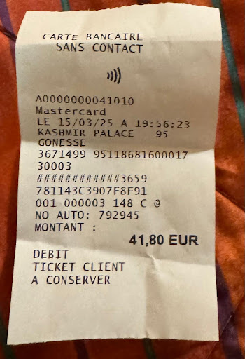 The service is super fast, barely ordered, immediately served! The food is hot and very tasty! Special mention for the Butter Chicken, a real delight! The servers come very often to your table to make sure that everything is fine and that you don't miss anything.