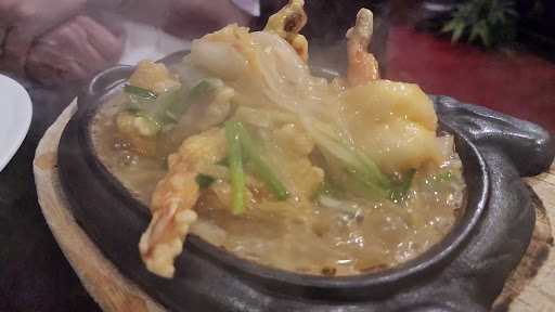 The hot plate shrimp with ginger and onion was good as well. Not too salty. BBQ roast pork or chat siu was a bit different, but all good with savory sauce and...