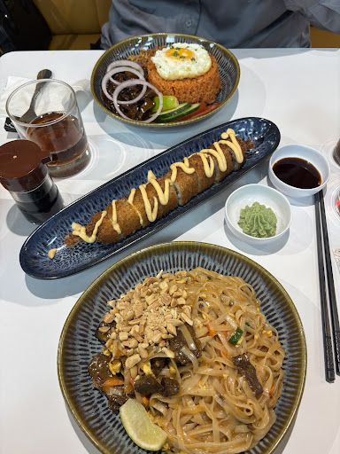 Nous avons commencĂ© par des sushis panĂ©s qui Ă©taient vraiment excellents, croustillants, bien garnis, rien Ă redire. Ensuite, nous avons commandĂ© un pad thaĂŻ et un lok lak. Le lok lak Ă©tait bon, le bĆuf Ă©tait parfaitement cuit, tendre et savoureux.