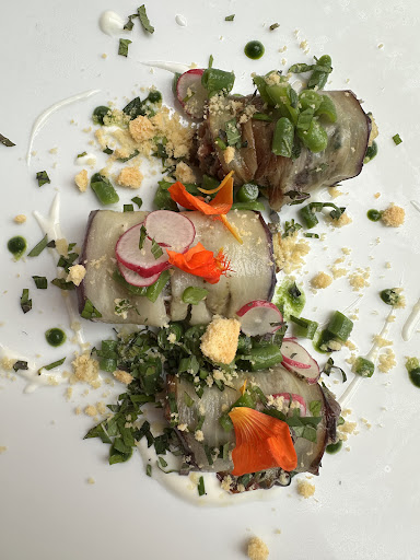 On a friend's strong recommendation we came for Sunday lunch. What a find! The restaurant is situated in a beautiful tranquil setting. We were greeted at the door by the friendly owner who gave exceptional service throughout. The dining area is warm and inviting and the food...WOW! We were offered an amuse bouche of parmesan biscuits followed by creamy Jerusalem artichoke purée... delicious! Our party of four went on to have starters of super fresh cuttlefish, beautifully prepared with horseradish and celeriac, Potato and onion soup with local cured ham which was full of flavour. Mains included beef and monkfish beautifully served with seasonal vegetables and incredible sauces. Desert: local cheese board and an out-of-this-world Paris brest with praline cream. The owner told us that all ingredients are sourced locally and served as fresh as possible. The proof is in the taste! As such, the menu is updated weekly. The wine list was extensive with several organic choices. All four of us agreed it was one of the best meals we have ever had in France and will definitely...