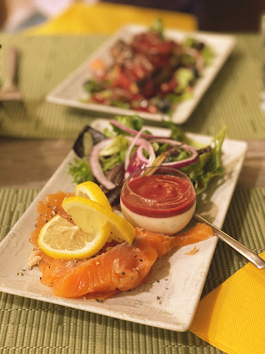 🥩Fresh Trout Salad This dish is quite unique. The locally sourced fresh trout has an excellent texture and taste. Paired with goat cheese, it surprisingly lacked a pronounced goat cheese smell. Additionally, the beetroot sauce on top of the cheese somewhat muted its flavor, making it a more accessible dish, even for those not well-acquainted with goat cheese. A very considerate touch of creativity.