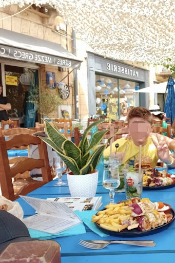 Read moreUn restaurant grec pour ceux qui ne connaissent pas la cuisine grecque. Il est écrit sur la carte qu’il y a des gyros sur place ou à emporter. Nous avons donc demandé si c’était possible de prendre deux gyros sur place, le chef nous a d’abord refusé en disant qu’il ne les fait pas sur place mais seulement à emporter (il faut enlever le « sur place » de la carte dans ce cas). On voulait donc pas rester ici mais le chef a décidé que finalement il pouvait nous les faire sur place, mais sans enthousiasme. Il y avait peu de personnes en terrasse mais on a quand même attendu une heure pour être servie, les boissons sont arrivées au bout de une demi heure (deux coca). Quand on a été servi le gyros qui a première vu semblait bon était très peu garni (beaucoup de salades, peu de viande, pas de Houmous) avec des frites surgelées. Je demande si il y a du ketchup pour pouvoir apprécier ces frites surgelées et on me répond « non dans mon grec pas de ketchup » mais un bon grec ne ferait pas frites surgelées molles. D’ailleurs vous pouvez retrouver au menu un burger de canard du Périgord, en quoi c’est traditionnellement grec ? On me refuse du ketchup et on me répond avec mépris mais on ose servir un burger au canard dans un restau grec, ce qui prouve que c’est un attrape touriste et qu’il n’y a rien de typique. Pour l’addition 35€ (14€ le gyros avec frite) deux gyros et deux coca. C’est excessivement cher voir honteux surtout pour ce qui a été servi. Le reste du menu est aussi excessivement cher. Je me souviens d’un bon grec à Paris où le gyros était à 7€ avec frites, que je regrette. Il est préférable d’aller dans les autres restaurants...