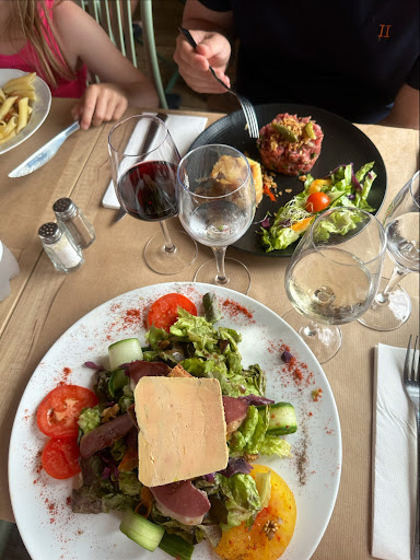 Read moreA éviter, à fuir, allez ailleurs ! Je m'explique. Je n'ai pas pour habitude de mettre des avis négatifs (à en juger par les différents avis que j'ai pu laisser). Mais alors là, je pense qu'il est nécessaire d'avertir la clientèle de la médiocrité de ce restaurant. Alors, en soi, la nourriture n'est pas mauvaise (magret et tartare de saumon essayés). Néanmoins, en terme de quantité et de garnitures , attention à l'arnaque. A peine 70/80g de magret, qui se battent en duel avec trois petits pois et une portion de pommes de terre équivalente à celle proposée à un enfant. Quant au tartare de saumon, il était accompagné de rien si ce n'est une feuille de salade (je n'exagère pas) et une fine lamelle de carotte (là encore, je n'exagère rien). Passons au service. Il faut savoir que nous avions réservé en amont. Nous arrivons, les serveuses passent devant nous, pas un bonjour. Accueil minable. Finalement, on veut bien nous accorder un minimum de temps et on nous place. On fait face à une serveuse qui littéralement se noie dans un verre d'eau. Le restaurant était loin d'être complet, elles étaient trois au service. Et la personne qui nous a servi n'a pas arrêté de dire qu'il y avait trop de monde et de se plaindre d'avoir à gérer une table de six personnes installées un peu plus loin. Merci l'ambiance. On prend nos commandes. Nous n'avons pas fini les apéros que déjà les plats arrivent. Mon compagnon s'est donc retrouvé avec un mojito, un verre de vin rouge et un magret, tout en même temps. Par contre, j'attends toujours ma carafe d'eau. Les desserts ? Ne vous y essayez pas. Ils sont gentiment exposés bien surgelés, bien industriels, juste devant les toilettes. Et enfin, quand on nous demande si tout s'est bien passé et qu'on a le malheur de dire qu'on aurait aimé peut être un peu plus de garnitures, un peu d'eau, pouvoir finir les apéros tranquillement, on se fait incendier par le gerant Bref,...