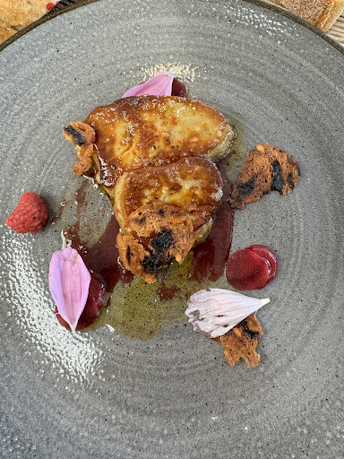 Read moreIt was so fantastic! Beautiful room with large windows. Benoit, one of the waiters, was so friendly and helpful! The perfect waiter! The food was magnificent! The foie gras was the best we have had in France. The risotto w/ mint and hazelnuts was also so delicious. The gnocchi with cheese and truffles was excellent but quite small for a main course. The chicken w polenta was also magnificent. Desserts were very good too. All of the food was so gorgeously presented and tasty. There is a Bernaise mountain dog named Ted who lives in the attached hotel - sweet but shy. We will come back for dinner tonight...