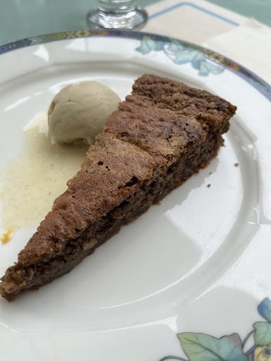 Le Jardin de la Princesse : une jolie surprise en fin de visite du château de Losse. Nous conseillons la pause gourmande. Très déçus à Sarlat, où nous avions mangé une cuisine périgourdine sans saveurs, sans personnalité, bref sans "amour " et totalement indigeste, nous avons trouvé ici tout le contraire. Le cadre déjà, verdoyant, reposant, tranquille, et agréablement aménagé et paysagé. Le service ensuite, absolument charmant et attentionné. Et plus qu'un salon de thé, une table de qualité, avec des plats relativement simples mais fins et réalisés avec des produits frais, locaux pour la plupart et excellents. On notera que j'ai écrit "relativement simples", la simplicité étant une qualité quand elle s'allie au désir de faire plaisir, au savoir-faire et à la qualité. À la veille de notre retour chez nous, pour effacer l'expérience de Sarlat, nous avons donc choisi des plats périgourdins : la cuisse de canard confit et l'enchaud de porc, un régal ! Avec des garnitures de saison, goûteuses et joliment présentées. Et les desserts !! 😋 Le gâteau aux noix sans farine, recette grand-mère, entre autres, une merveille ! Vous pouvez y aller les yeux fermés, plaisir assuré. MERCI au chef et à la dame qui nous a servis, au sourire et à la gentillesse...