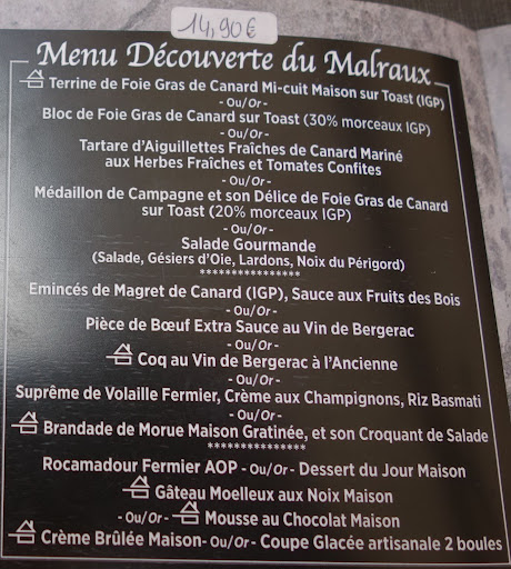 I don’t expect most restaurants to be great in Sarlat since it’s a very tourist town but we did manage to get some reasonable meals in some places. This restaurant however was not one of them as the meal was clearly cooked by a keen but talentless chef. I had a distinctly chewy beefsteak and my wife had the Coq au vin which was tough and almost inedible. Sadly, the bits that she did manage gave her food poisoning and she was very ill the next day. We both had a chocolate dessert which was a small dry tasteless cake. When we mentioned that we were not impressed with the meal to the waiter, we were met with a blank stare and fixed “we don’t care” smile. So I would urge anyone to avoid this place and not be ripped off as we...