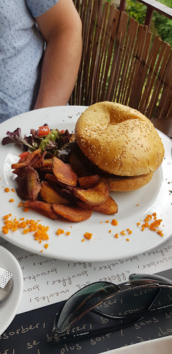 On arrival we were greeted by a lovely and friendly man who showed us to our table outside at the back of the restaurant which was a surprise. Our French is still quite ropey so this very kind man read the menu to us in English and French and told us about each dish. My husband went for a burger, I had an amazing Aubergine dish and our son had his holiday favourite of chicken nuggets.
